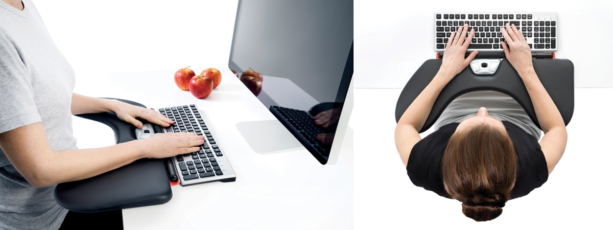 Reduces Load on the Shoulders The ArmSupport Max transfers the weight of the arms off of the shoulders and onto the desk. This reduces the strain on the soft tissues of the shoulder area while also encouraging a relaxation of the muscles across the neck and shoulder girdle.