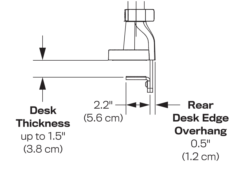 - Select the Optimal Mounting Location - Since the E5 Triple Dynamic Pole Monitor Arm comes with a 2-in-1 configurable top down mount, you have two options when it comes to mounting your monitor arm. Most people choose the desk clamping option but this only works if your desk has a lip on the mounting side and average depth (24-30"). Otherwise, a grommet mount is the next best option. You need a grommet hole of at least 2.25" diameter for the grommet mount to work, whereas the through mount requires that you drill a small hole in the desk to bolt the mount through the desk to secure it. You may want to roughly position the mount in different locations at first to get an idea of where the movement of the arm is optimal and then decide on which mounting option works best at that location.