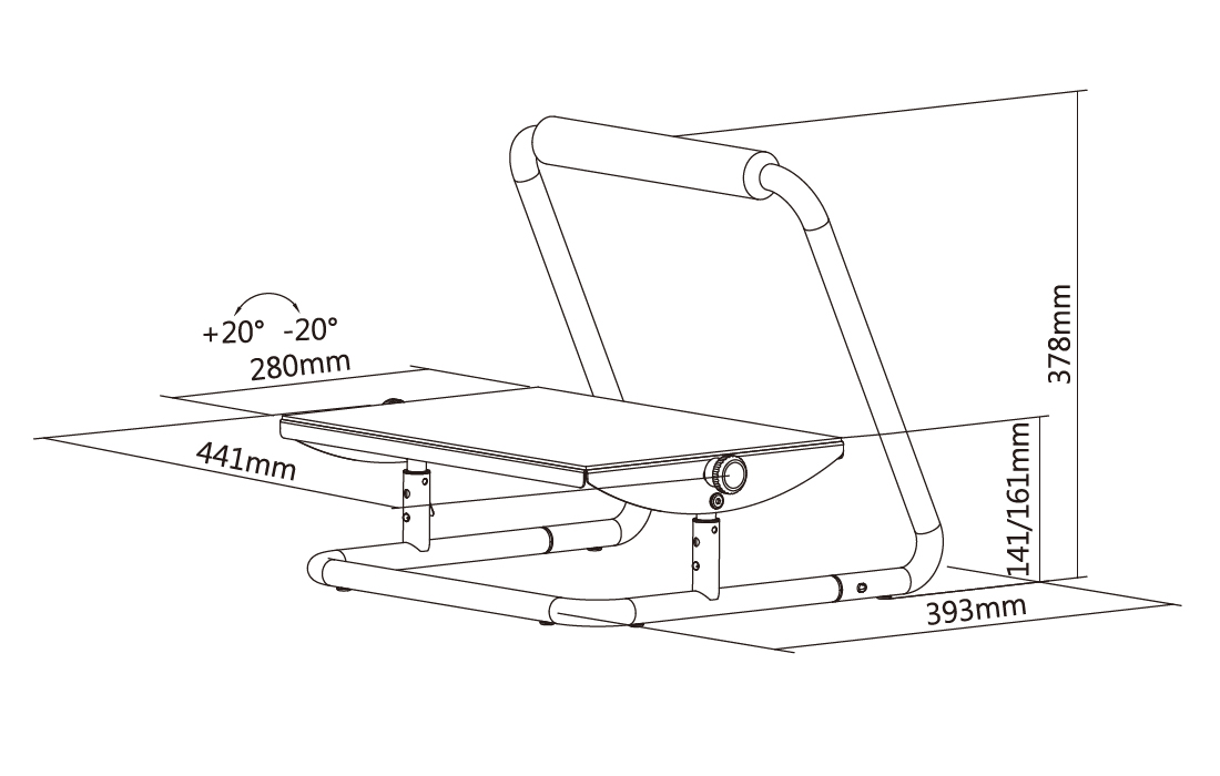 Tilt Angle Range: +20° to -20° - Platform Height (when level):