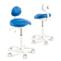 The Apical Dental Chair with Adjustable Support from Score is designed to provide advanced ergonomic posture for dental practitioners. It departs from traditional flat seats by incorporating concepts generally only seen in full saddle-style seating. By combining features of both the Apical becomes a very suitable option for practitioners who may not be comfortable shifting to a full “saddle” solution but who want to benefit from the improved ergonomic seating position that a saddle seat can offer.